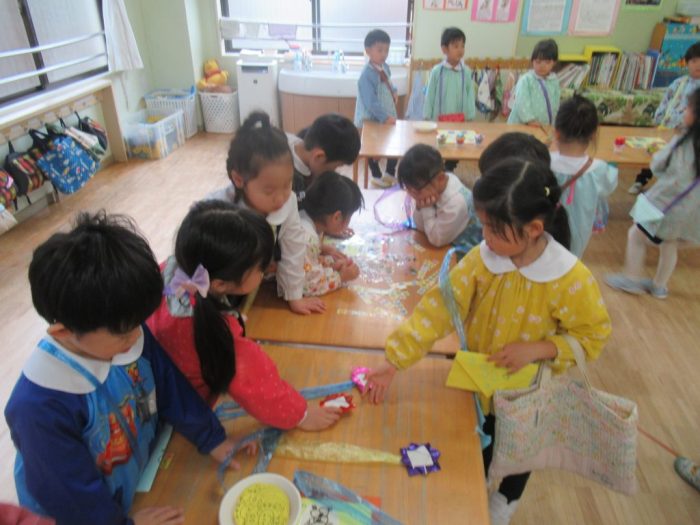 Jingu News 一覧 お店屋さん、オープン!! 4歳児 2025年12月3日 色とりどりのゼリー、キラキラのメダルを作って、みんなで売り買いを楽しみました。「いらっしゃいませー!」の元気な声が響き渡り、お店屋さんは大繁盛でした。 子育て支援室なかよしルーム 12月の予定 2025年12月1日 12月1日(月)より、なかよしルームの12月のイベントの予約受付開始となります。「願いを込めて☆絵馬を作りましょう!」「リズムでタンタンスペシャルin神宮幼稚園ホール」など、楽しいイベントが盛りだくさんです!ぜひ遊びにいらしてくださいね。※お車でお越しの方は、新潟大神宮の境内に駐車可能です。どうぞご利用ください。 ひかり★音楽隊 訪問演奏会 2025年11月25日 ママさんブラス ひかり★音楽隊の皆さんが来園し、生演奏を聴きました。知っている曲が流れると、手拍子をしたり、一緒に歌ったりして笑顔いっぱいの素敵な演奏会になりました。 みんなでどんぐりひろいに行きました! 2025年11月12日 秋晴れの中、西大畑公園にみんなでどんぐり拾いに行きました。「あった!」「こっちにも!」と、子どもたちはどんぐり、松ぼっくりを夢中になって見つけて歓声をあげてて夢中になって拾っていました。 秋の宝物をみんなが大切に持ち帰りました。 作品展がありました! 2025年11月10日 子どもたちの力作が揃った作品展が11月8日(土)にありました。お家の方と一緒に頑張って制作した作品を見て回り、「すごいね!」とたくさん褒めてもらった子どもたち。ホールや支援室で開催された様々なコーナーも親子で楽しみ、笑顔がたくさん溢れる一日となりました。 さつまいも掘りに行ってきました!~3歳児~ 2025年10月29日 中央区にある『ゆいぽーと』さんへ行き、春に植え付けをしたさつまいもを掘ってきました。長く伸びるつるに驚いたり、土の中からさつまいもが見えてきて「やったー!」と喜んだりしている子どもたち。季節ならではの体験をすることができました! 子育て支援室なかよしルーム 11月の予定 2025年10月28日 10月31日(金)より11月のイベントの予約受付が始まります。「トイレトレーニング講座」や「食育なんでも相談」など、ぜひこの機会にお申込みくださいね。また、なかよしルームインスタグラムにて最新情報を随時更新しています。ぜひご覧ください!※お車でお越しの方は、新潟大神宮の境内駐車場をご利用いただけます。 交通安全教室に参加しました! 2025年10月15日 新潟市中央区役所の交通指導員の方が来園し、交通安全について、皆でお話を聞きました。 横断歩道の歩き方を指導員方と一緒にしたり、4歳児、5歳児の大きいクラスの子どもたちは、「止まれ」の標識でしっかり止まるという交通ルールをゲームを通して学んだりすることができました。 おいもほり体験をしてきました! 4歳児・5歳児 2025年10月8日 5月に植えたサツマイモの苗がぐんぐん生長し、いよいよ収穫の時期!『ひだか農園』さんにさつまいもの収穫をしに行ってきました。小さいクラスのお友達も年中さん年長さんの掘ってきたおいものお土産に大喜びでした! 子育て支援室なかよしルーム10月の予定 / 令和8年度入園のご案内 2025年9月30日 10月2日(木)より、なかよしルームの10月のイベントの予約受付開始となります。「英語で遊ぼう」や「ベビーヨガ&産後ママストレッチ」など、楽しいイベントが盛りだくさんです。ぜひ遊びにいらしてくださいね!また10月1日(水)より、令和8年度のご入園を希望される方向けのお手続きが始まります。お気軽にお問い合わせください。 1 2 3 4 5 … 56 »