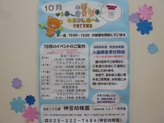子育て支援室なかよしルーム9月イベント/令和7・8年度神宮幼稚園・じんぐう保育園新入園見学説明会のご案内