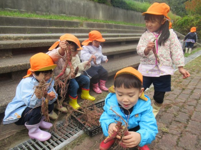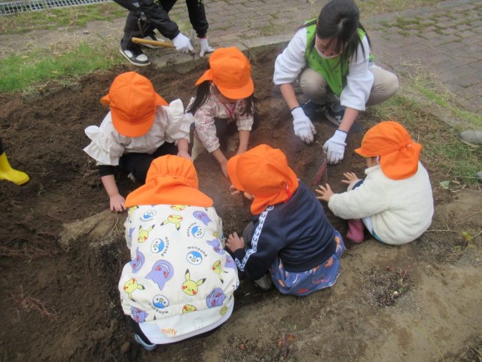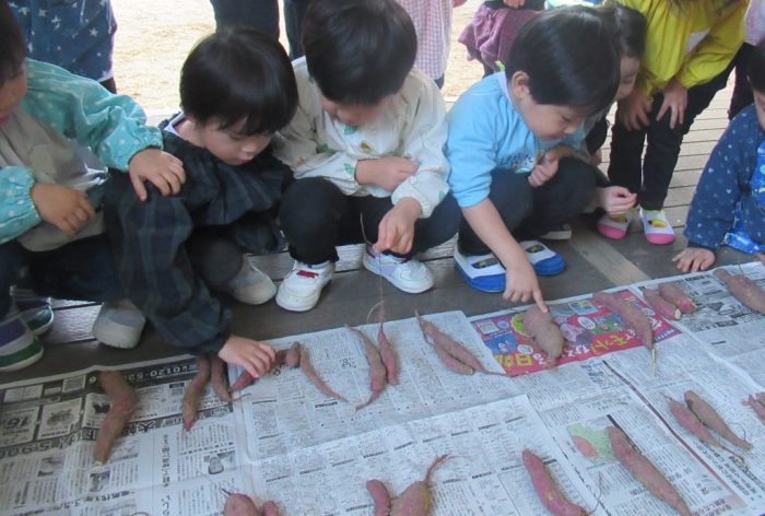 中央区にある『ゆいぽーと』さんへ行き、春に植え付けをしたさつまいもを掘ってきました。長く伸びるつるに驚いたり、土の中からさつまいもが見えてきて「やったー!」と喜んだりしている子どもたち。季節ならではの体験をすることができました!