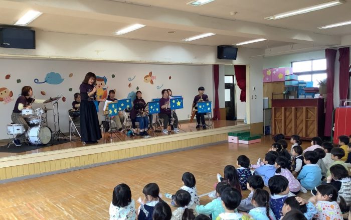 Jingu News ひかり★音楽隊 訪問演奏会 2025年11月25日 ママさんブラス ひかり★音楽隊の皆さんが来園し、生演奏を聴きました。知っている曲が流れると、手拍子をしたり、一緒に歌ったりして笑顔いっぱいの素敵な演奏会になりました。 Jingu news 一覧